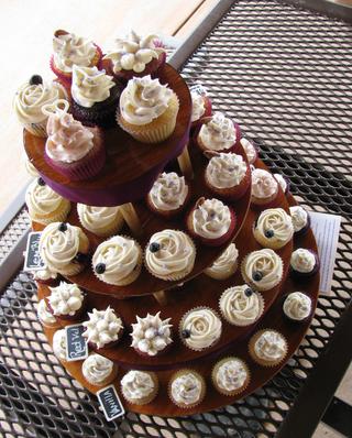 You are always welcome to provide ribbon to the bakeshop to use to trim your cupcake tower display! We do not allow customers to modify the towers, and if you do you may be charged a hefty damage fee, especially for the use of a glue gun. Let us prepare your tower for you!
